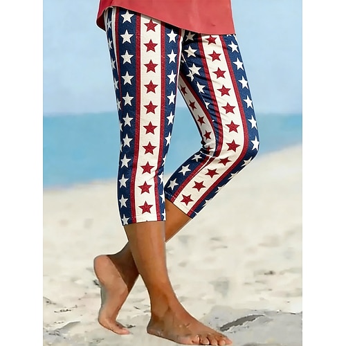 Giorno dell'Indipendenza Leggings Patriottici da Donna Vacanza Moda Vintage Capri Alta Vita Pantaloni Stampa Grafica Bandiera Comfort Morbida Traspirante Elastico Casual Quotidiano Ufficio Bianco