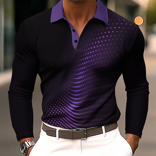 Herren Geometrisch Abstrakt Polo Langarm Polo-Shirts Revers Lässig Geschäft Alltagskleidung 3D-Druck Knöpfe Frühling Herbst Blau Schwarz Rote