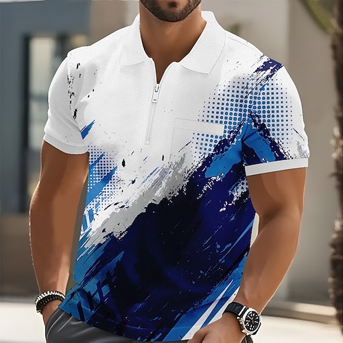 Herren Abstrakt Geometrisch Poloshirts Kurzarm Polo-Shirts Hemden mit Kragen Lässig Outdoor Athleisure Ferien Tasche 3D-Druck Viertelreißverschluss-Poloshirt Frühling Sommer Blau Rote Purpur