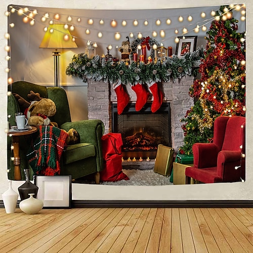 decorazioni natalizie babbo natale albero di natale festa di natale grande arazzo da parete decorazione artistica sfondo fotografico fondale coperta appeso casa camera da letto soggiorno camino calza