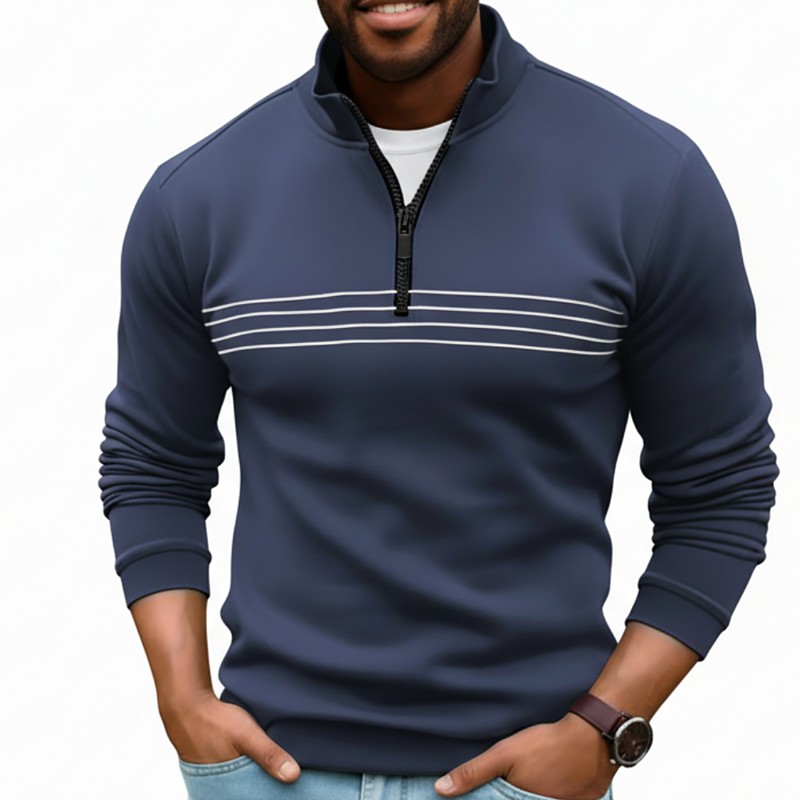 Men's Polo Shirts Quarter Zip Polo Vacation Casual Quarter Zip Long Sleeve Fashion Comfortable Stripes Zip Up Spring Fall All Seasons Regular Fit Navy Black Orange Khaki Polo Shirts