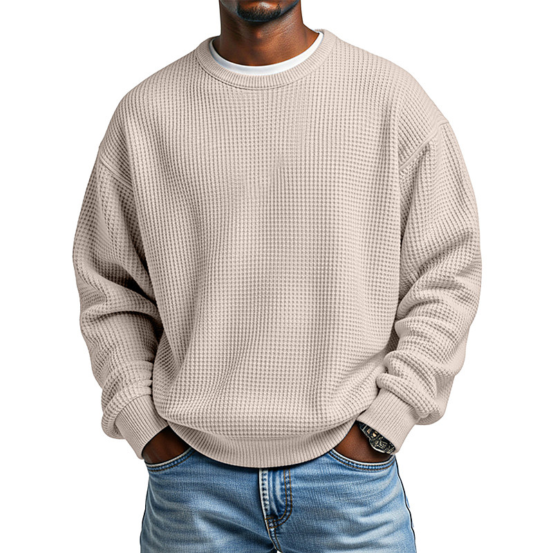 Men's Sweatshirt Waffle Sweatshirt Pullover Apricot Black White Light Green Red Crew Neck Plain Textured Sports Outdoor Casual Daily Streetwear Cool Sportswear Spring Fall Clothing Apparel