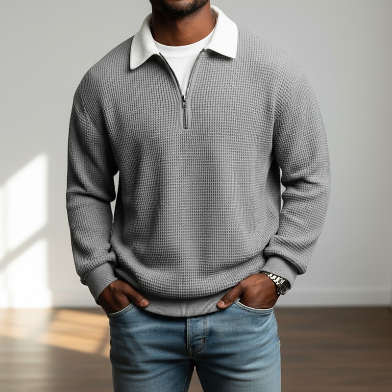 Men's Waffle Polo Shirts Textured Casual Quarter Zip Long Sleeve Fashion Comfortable Color Block Zip Up Pocket Fall Spring Fall Regular Fit White Black Blue Light Blue Dark Gray Purple Waffle Polo