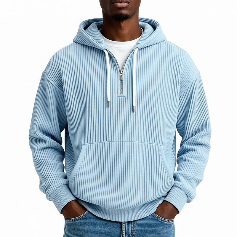 Men's Hoodie Corduroy Pullover Quarter Zip Hoodie Apricot White Purple Green Light Grey Hooded Plain Kangaroo Pocket Textured Casual Daily Sports Outdoor Streetwear Cool Sportswear Spring Fall