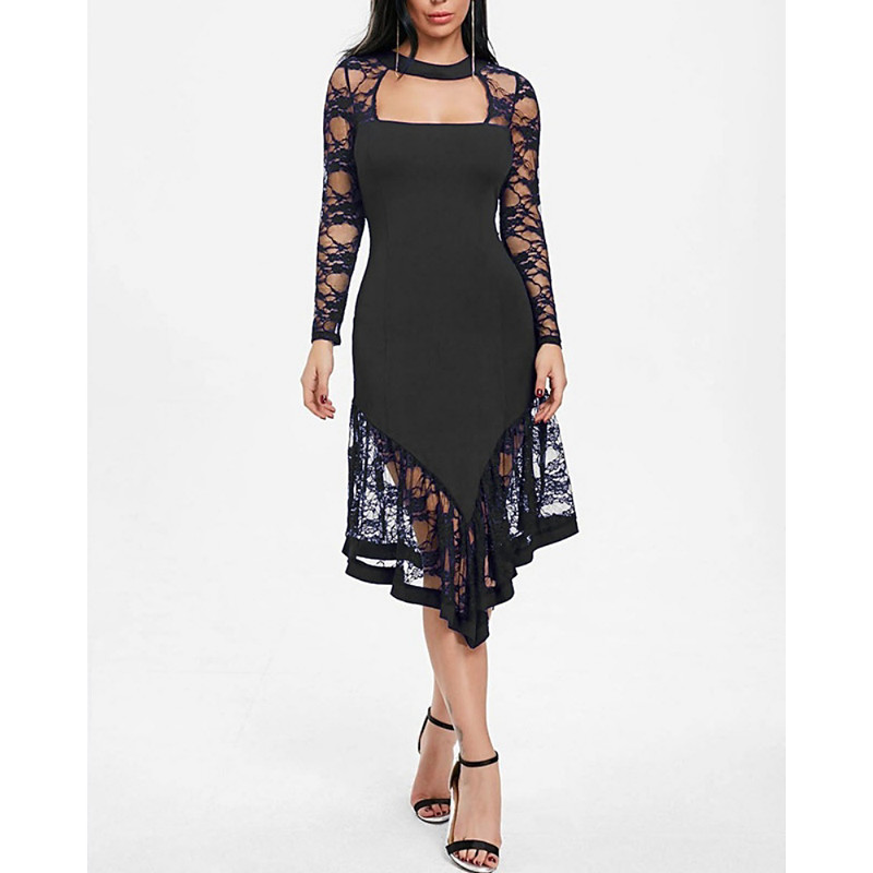Women's Midi Dress Black Dress Lace Dress Prom Dress Party Dress Elegant Fashion Modern Evening Party Party Special Occasion Regular Fit Plain Long Sleeve Crew Neck Blue Black Red Purple Spring Fall