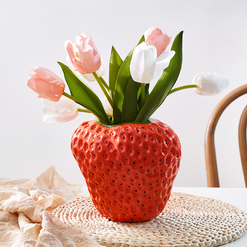 Cute Red Strawberry Decorative Home Vase Creative Resin Material Handmade Handicraft Vase Suitable for Flower Hydroponics Home and Restaurant Flower Decoration Decoration