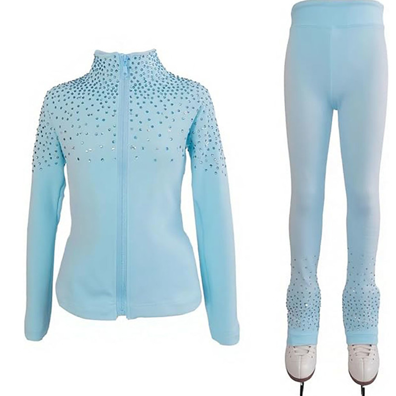 Figure Skating Jacket with Pants Women's Girls' Ice Skating Outfits Blue Stretchy Training Competition Skating Wear Thermal Warm Crystal / Rhinestone Long Sleeve Ice Skating Figure Skating