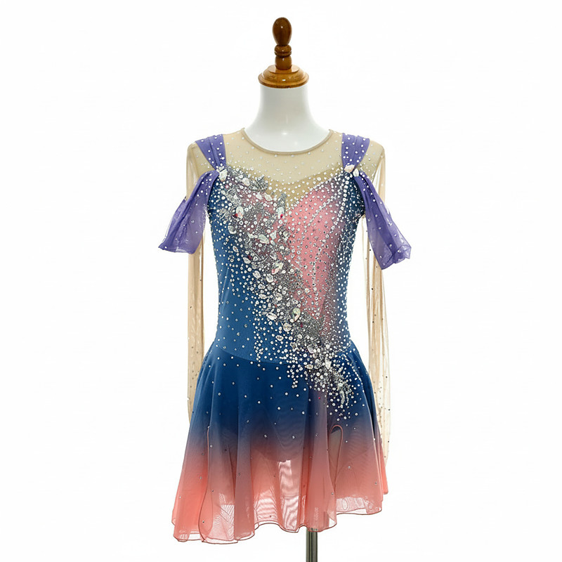 Figure Skating Costumes For Adults And Children Customized With Colored Diamonds Blue Spandex Mesh Grading Performance Costumes Competition Training Gradient Rhinestone Dresses Performance Costum