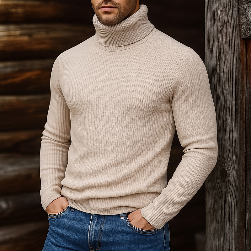 Men's Turtleneck Sweater Pullover Sweater Jumper Cropped Sweater Ribbed Knit Regular Tops Knit Plain Turtleneck Modern Contemporary Casual Casual Work Clothing Apparel Fall Winter Wine Black S M L