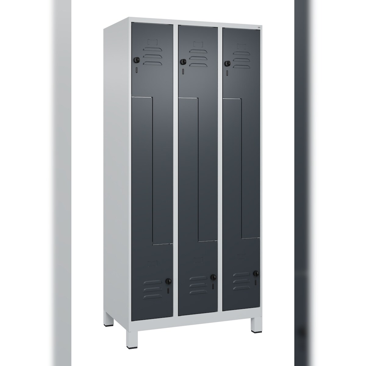 C+P Z-Spind Classic PLUS, Füßen, 6 Abteile, HxBxT 195x90x50cm, Sicherheitsdrehriegel, Hellgrau/Anthrazit von PROREGAL