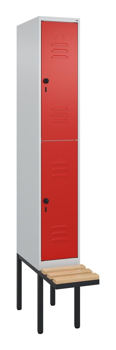 C+P Spind Classic PLUS, Buche untergebaute Sitzbank 2 Abteile, HxBxT 212x80x82cm, Zylinderschloss, Hellgrau/Rot von PROREGAL