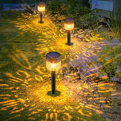 4 proiettori solari da giardino per uso esterno domestico, luci solari da giardino con spina, impermeabili, per decorazione di cortili e giardini, illuminazione per vialetti e prati esterni di ville.