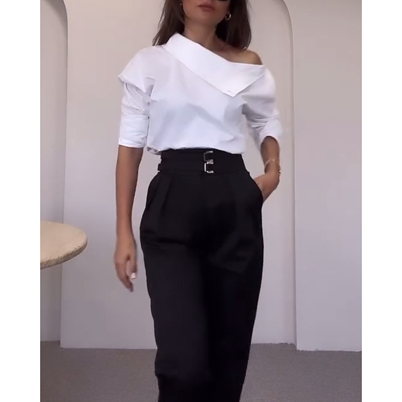 Women's Blouse Dressy Tops Solid Color Plain Elegant Vintage Daily Long Sleeve High Neck Regular Tops Work Daily Holiday Ruched Buttons Draped White Fall Winter