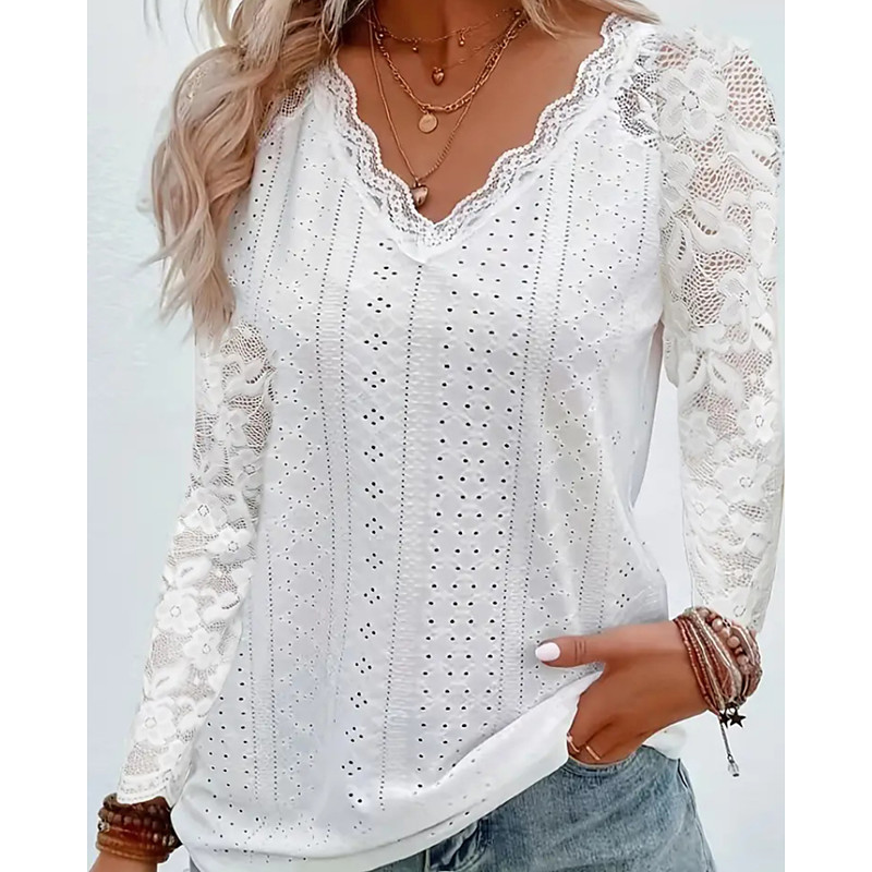 Women's Blouse Lace Tops Plain Active Stylish Long Sleeve V Neck Regular Tops Daily Holiday Going out Lace Patchwork White Pink Wine Light Blue Summer Spring