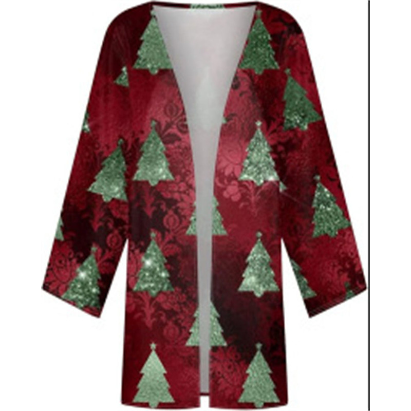 Christmas Women's Shirt Blouse Dressy Tops Graphic Santa Claus Christmas Tree Elegant Vintage Cute Long Sleeve Asymmetrical Regular Tops Daily Work Holiday Ruched Print Draped Black White Wine Red