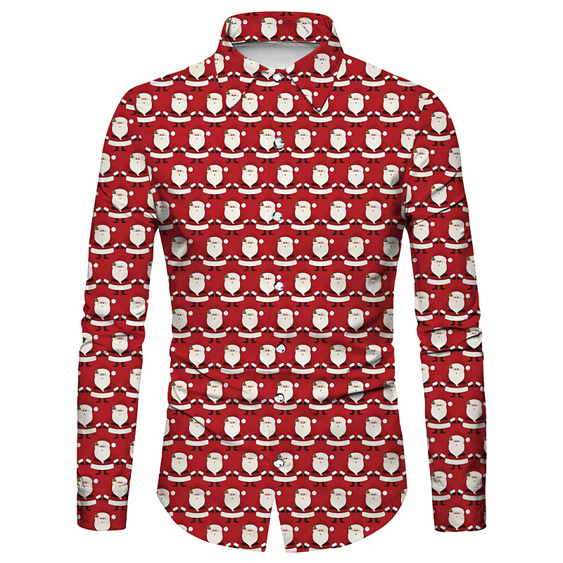 Christmas Men's Funny Christmas Printed Shirts Shirts Santa Claus Turndown Green Pink Wine Red 3D Print Outdoor Long Sleeve Button-Down Print Clothing Apparel Fashion Designer Casual