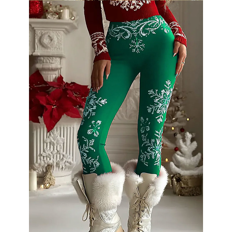 Women's Leggings Vacation Vintage Ethnic Style Full Length High WaistPantsUgly Christmas Graphic Snowflake 3D Print Quick Dry Breathability Soft Stretchy Outdoor Home Causal Red Blue Purple Green