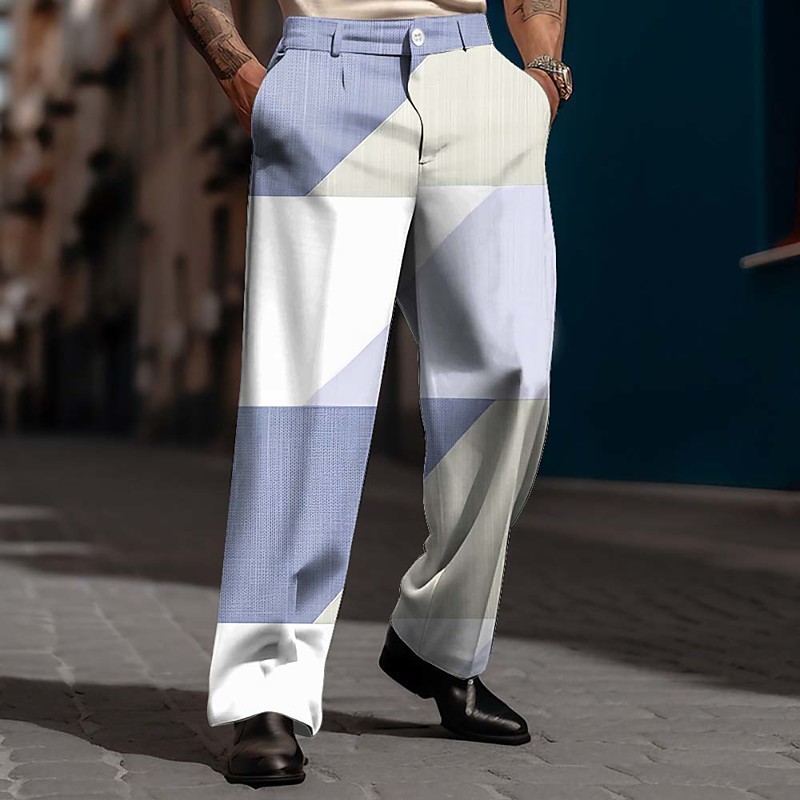 Men's Geometric Color Block Patchwork Trousers Dress Pants Suit Pants Mid Waist Business Casual Outdoor Dailywear Relaxed Fit Flat Front Dress Pants with Side Pockets Spring Fall 3D Print Blue Purple
