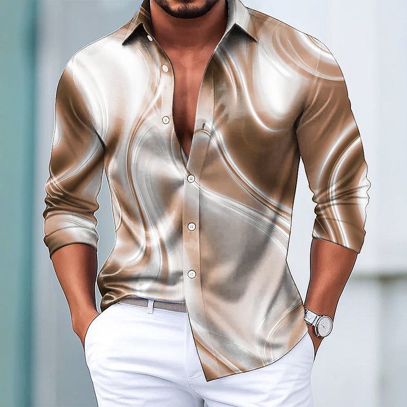 Men's Geometric Gradient Color Abstract Art Shirt Satin Shirt Dress Shirt Long Sleeve Fashion Casual Vacation Dailywear Summer Spring Fall Turndown 3D Print Button Up Shirts Blue Purple Brown Green