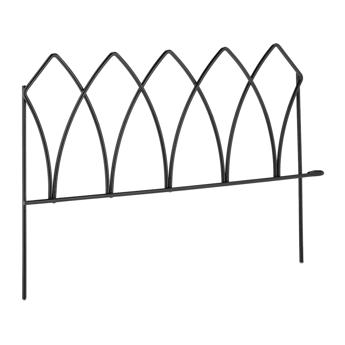 Relaxdays Beetzaun Metall, HxB je 29,5x43,5 cm, Garten Beeteinfassung zum Stecken, 4 Zaunelemente, Bogen-Optik, schwarz