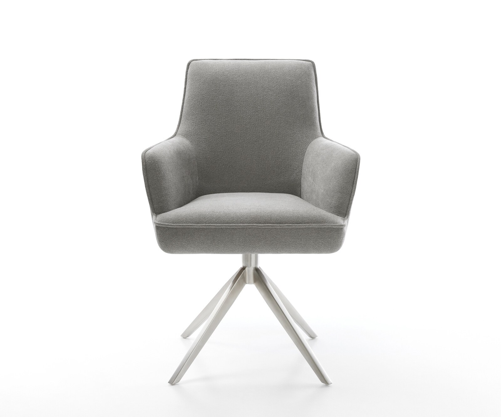 DELIFE Draaistoel Heira-Flex met armleuning zachte stof met structuur grijs kruisframe breed roestvrij staal 360° draaibaar rocker-functie pocketveer kern