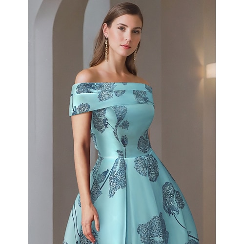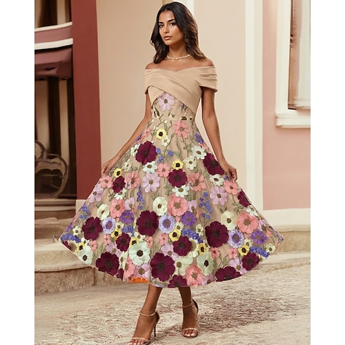 Linea ad A Lunghezza Tè Abiti da Cocktail Abiti da festa Vintage Festa Brillanti Senza Maniche Senza Spalle Balli di fine anno Compleanno Raso con Glitter Stampa floreale