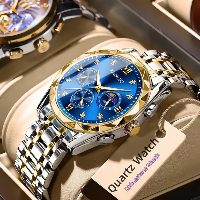 New Stainless Steel Strap Men's Quartz Watch Night Light Display with Rhinestones Scratch Resistant and Wear-resistant Dial Preferred for Holiday and Birthday Gift