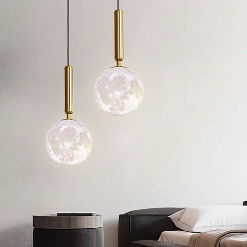 lampada a sospensione a led moon design lampada da comodino moderna nero oro globo desgin 15 cm metallo placcato finiture verniciate 110-120 v 220-240 v