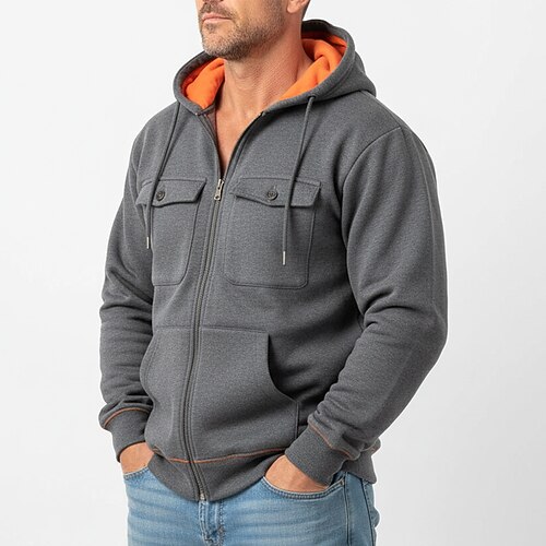 Per uomo Felpa con cappuccio Felpa con cappuccio a zip intera Felpa con cappuccio in pile Felpa con cappuccio tattica Grigio chiaro Grigio scuro Con Cappuccio Semplice Cerniera Blocco di colore