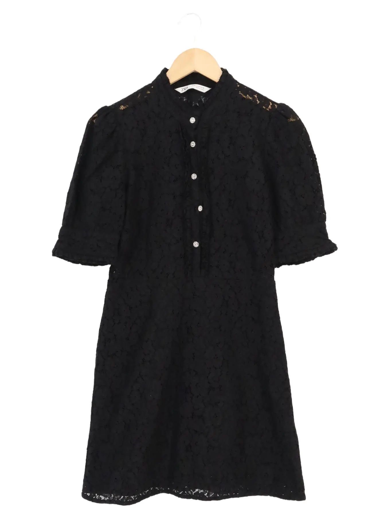 ZARA Damen Spitzenkleid Schwarz Mini A-Linie