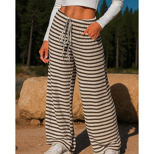 Per donna Gamba larga Chinos Pantaloni Eleganti Vacanza Vintage Streetwear Lunghezza intera Naturale Tinta unica Semplice Elastico in vita Stampato Comodo All'aperto Confortevole Inelastico