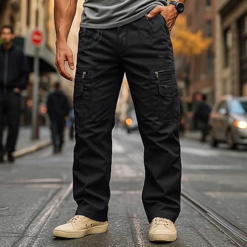 Per uomo Pantaloni Cargo Pantaloni da escursionismo Multi-tasche Gamba Dritta Semplice Indossabile Traspirante Lunghezza intera All'aperto Quotidiano Campeggio Escursionismo Moda Streetwear Nero Blu