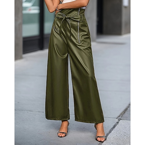Per donna Gamba larga Pantaloni Eleganti Moda Lavoro Lunghezza intera Naturale Semplice Cerniera All'aperto Confortevole Formale Ufficio / Carriera Grigio scuro Vinaccia Aalbicocca Grigio Autunno