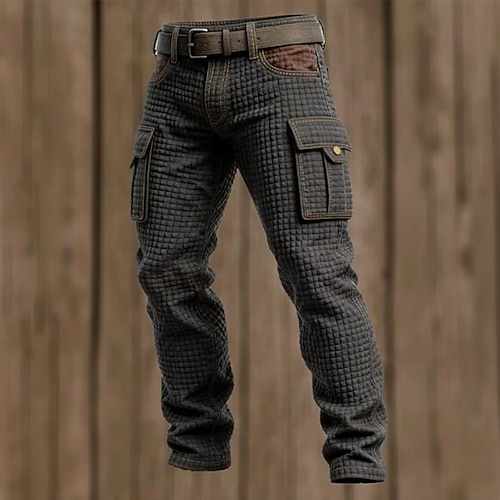 Per uomo Nido d'ape Pantaloni Cargo Pantaloni Pantaloni casual Patchwork Tasca Gamba Dritta Semplice Comodità Morbido Lunghezza intera Casuale Quotidiano All'aperto Vacanza Moda Nero Verde