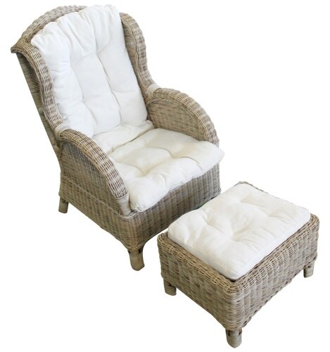 Lex Relax Rattan Ohrensessel Hocker Polster In & Outdoor Gartensessel Kaminsessel