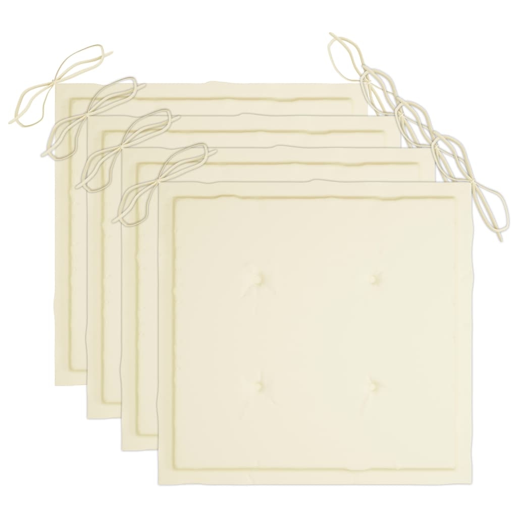 vidaXL 5-tlg. Garten-Essgruppe mit Kissen Klappbar Bambus : Größe - 40 x 40 x 4 cm, Polster-Farbe - Cremeweiß