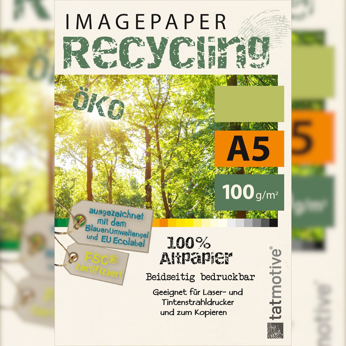 TATMOTIVE Imagepaper Recyclingpapier Öko 100g/qm A5, FSC zertifiziert, geeignet für alle Drucker, 2000 Blatt Kopierpapier Druckerpapier nachhaltig