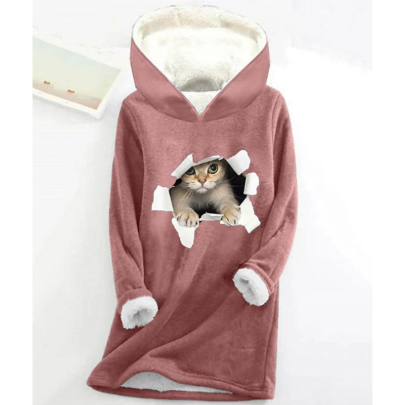 Women's Pullover Hoodie Sweatshirt Graphic Animal Letter Warm Casual Fuzzy Long Sleeve Hooded Long Tops Casual Sports Print Pink Blue Gray Fall Winter