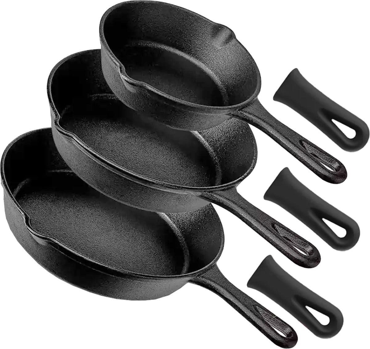 GrillX Gusseisen Bratpfannenset mit Griffen 3 Stück Bratpfanne