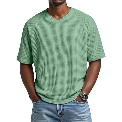 Da uomo Maglietta Waffle Maglietta Manica Corta Scollo a V Estate Tinta unica Moda Designer Casual Manica corta Casuale Quotidiano All'aperto Blu chiaro Nero Bianco Maglietta Top per Uomo