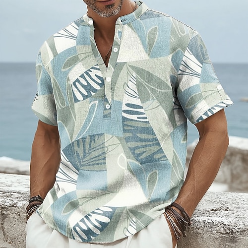 Per uomo Foglia di palma Palma di Cocco Piante Tropicali Camicia Camicia di lino Camicia Estiva Manica Corta Hawaiano Vacanza Abbigliamento Quotidiano Estate Primavera Collo alla coreana Colletto
