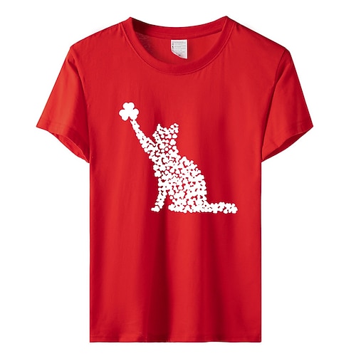 Per donna maglietta Gatto Trifoglio Festa di San Patrizio Informale Nero Vino Rosso Stampa Manica corta Di tendenza Rotonda Standard Primavera estate