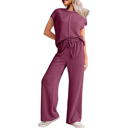 Per donna Set di Pantaloni Bolero Top Manica Corta Girocollo Semplice Coulisse Moda Streetwear Quotidiano All'aperto Lavoro Nero Verde militare Rosso Estate Vestibilità regolare