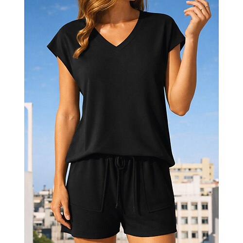 Per donna Set di biancheria in cotone Mezza Manica Scollo a V Semplice Vacanza Quotidiano Casuale Quotidiano Blu Nero Bianco Primavera Estate