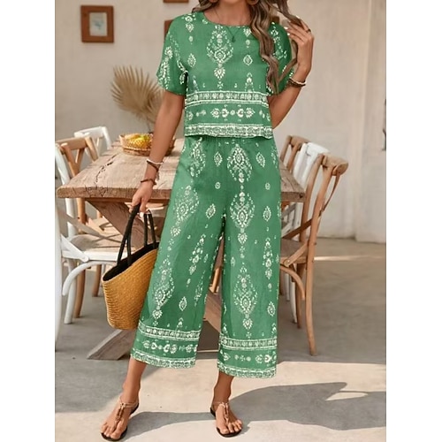 Per donna Set di Pantaloni Manica Corta Girocollo Floreale Grafico Stampato Moda Streetwear Casuale Quotidiano All'aperto Nero Marrone Verde Estate Vestibilità regolare