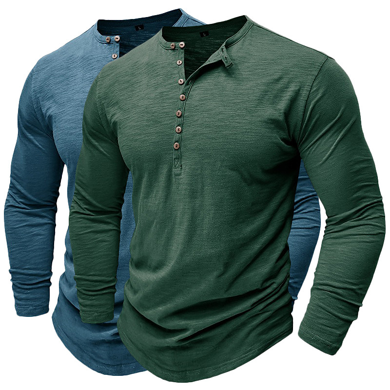 Men's Henley Shirt Tee Top Long Sleeve Shirt Long Sleeve Solid Color Plain Fashion Daily Casual 2 Piece Buttons Multi-pack Henley Outdoor Casual Summer All Seasons BrownGreen Dark Blue / Light Blue