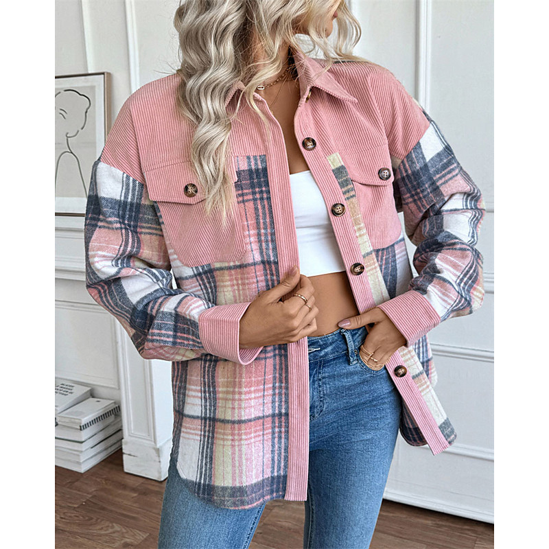 Women's Shirt Blouse Plaid Plain Elegant Vintage Ladies Long Sleeve Shirt Collar Regular Tops Daily Work Holiday Ruched Patchwork Pocket Pink Brown Fall Winter