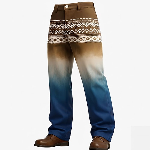 Per uomo Griglia / Plaid Colore sfumato Etnico Pantaloni Pantaloni Eleganti Pantaloni da Abito Misura del girovita medio Vintage Retrò All'aperto Abbigliamento Quotidiano Pantaloni eleganti con