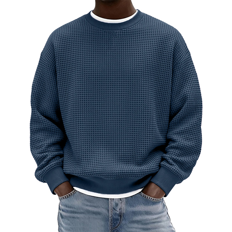 Men's Sweatshirt Waffle Sweatshirt Pullover Hoodie Sweatshirt Wine Red Black White Light Green Navy Blue Crew Neck Plain Textured Casual Daily Sports Outdoor Streetwear Cool Sportswear Spring