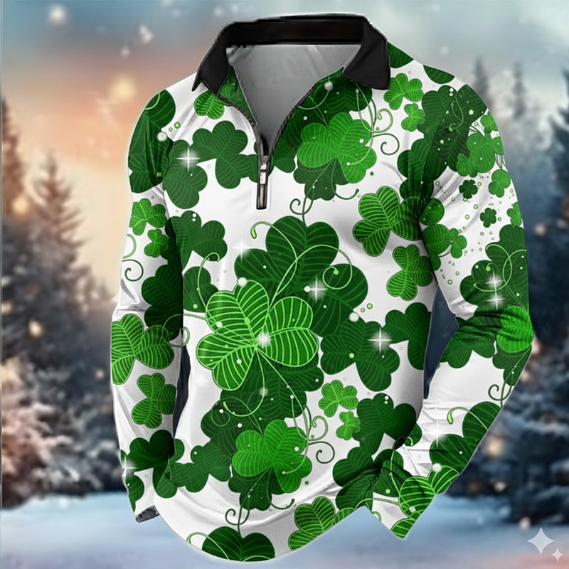 St. Patrick Men's Shamrock Polo Long Sleeve Turndown Modern Leisure Athleisure Casual Daily Festival Zipper 3D Print Spring Fall Winter Green Light Green